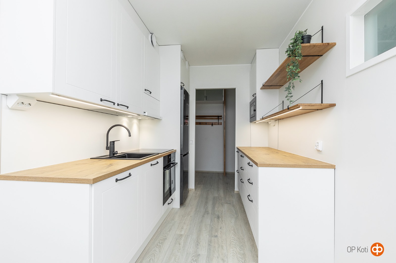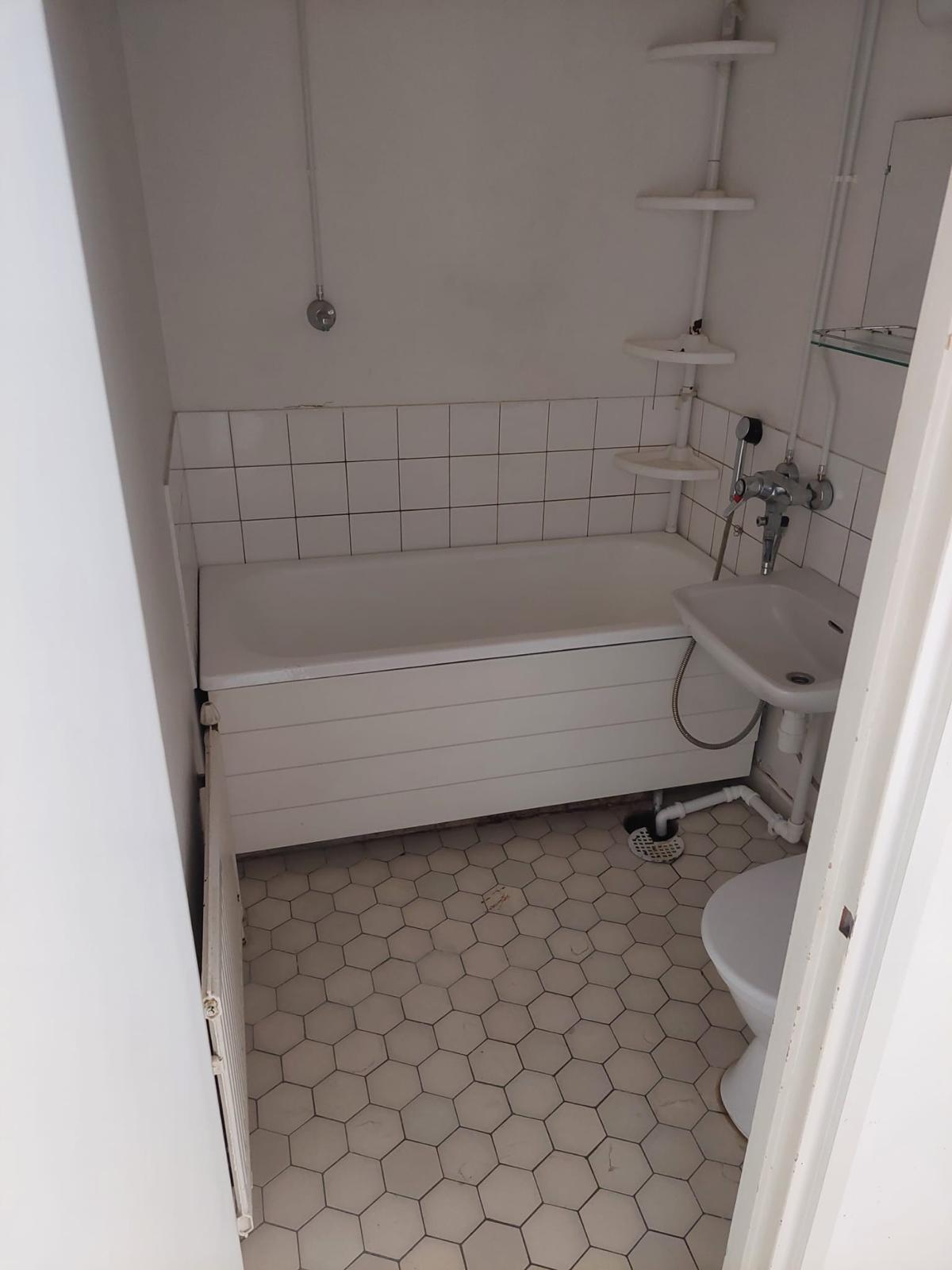 Rummunlyöjänkadun huoneistossa saneerattiin kylpyhuone ja uusittiin pinnat. Kuvista näet kylpyhuoneen ennen sekä jälkeen remontin. Kylpyhuone on pinta-alaltaan n.4m2 ja remontti sisälsi sähkötyöt, vesiputkien roilotuksen seinän sisään, sähköisen lattialämmityksen, laatat ja kalusteet.